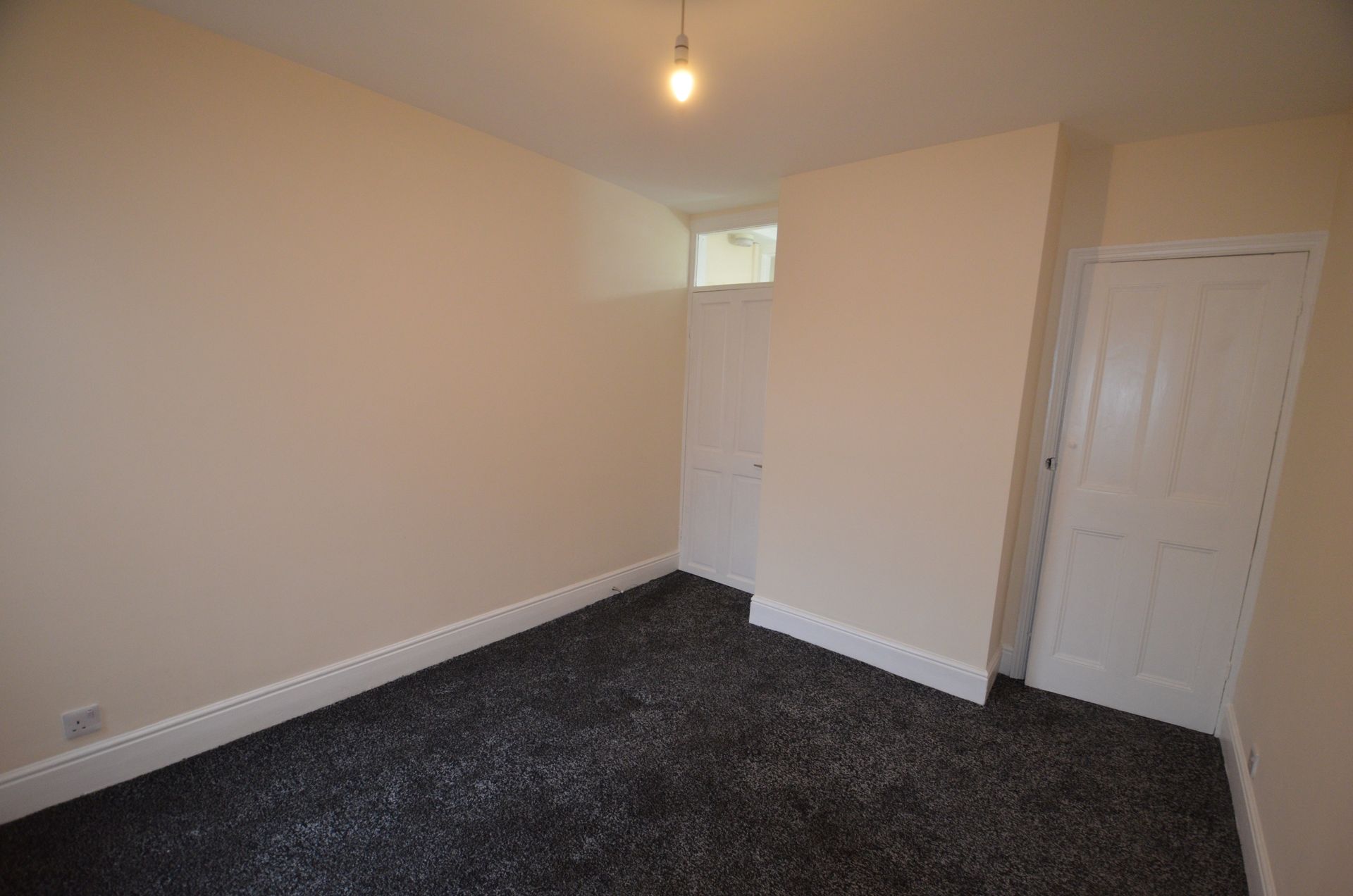 Front aspect double glazed window, radiator, built-in storage cupboard, ceiling light, and carpeted floor.
